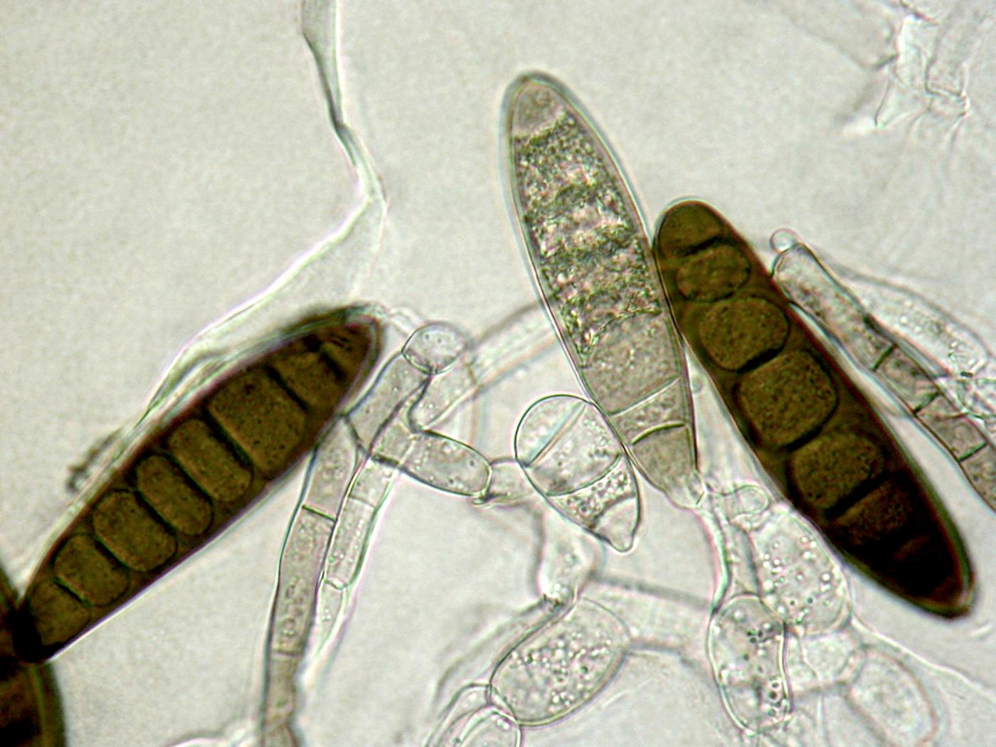 • Mycélium : Hyphes hyalines, brun pâle à brun foncé ou gris.