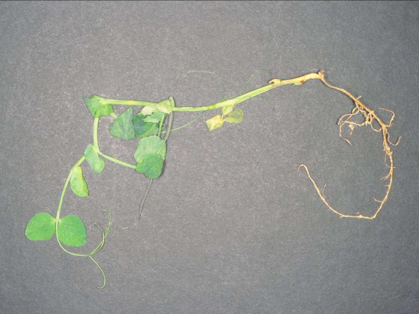Fusarium solani f. sp. pisi affecte les plantules et les jeunes plants (avant la floraison) et peut, selon le cultivar, causer de la fonte des semis en pré et postémergence.