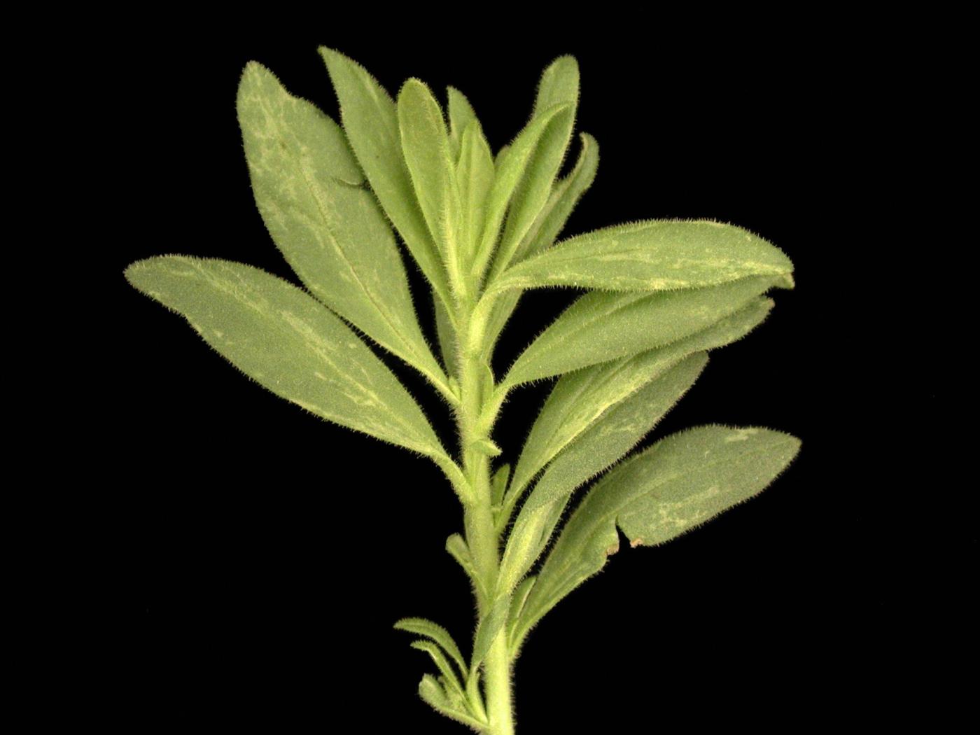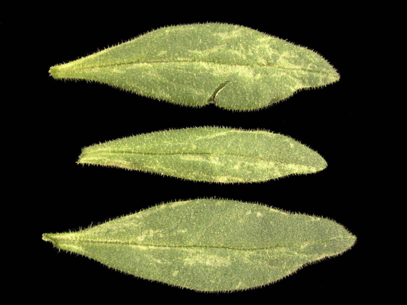 Feuille : présence de mosaïques, de marbrures, de mouchetures ou de petits anneaux vert pâle, jaunes ou blanchâtres. Présence d’un jaunissement internervaire lorsqu’il y a co-infection avec le TMV. Les feuilles sont parfois légèrement déformées et petites. Les jeunes feuilles sont les plus sensibles.