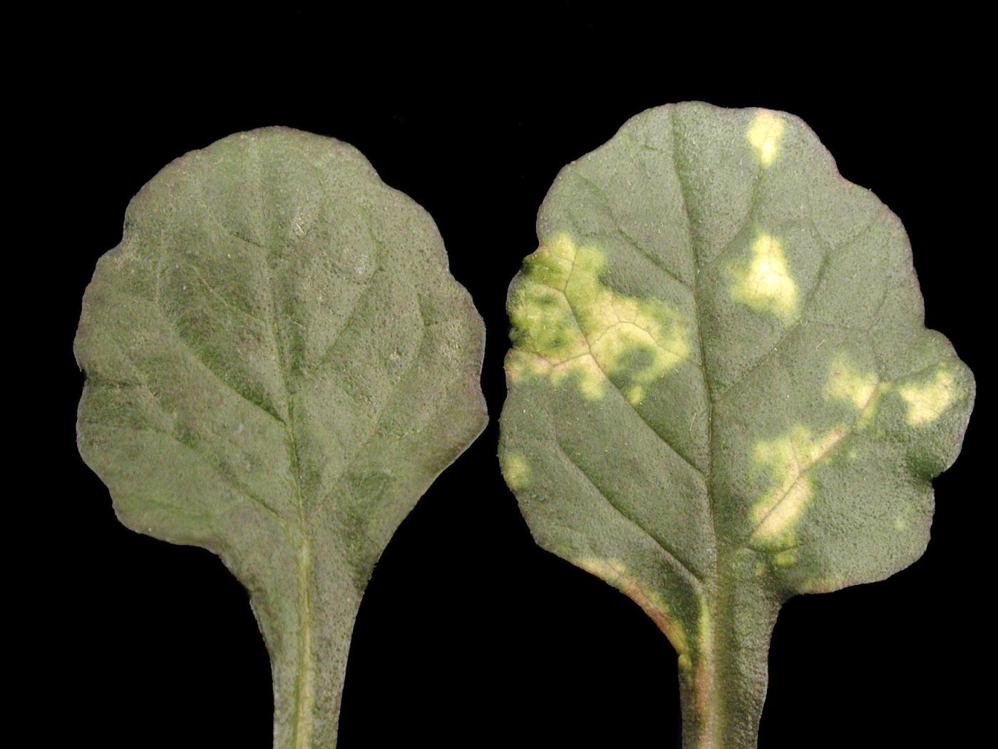 Les symptômes sur les feuilles varient selon la plante, la virulence de la souche du virus, le stade de développement de la plante et les conditions environnementales. Nous présentons les symptômes les plus fréquemment observés.