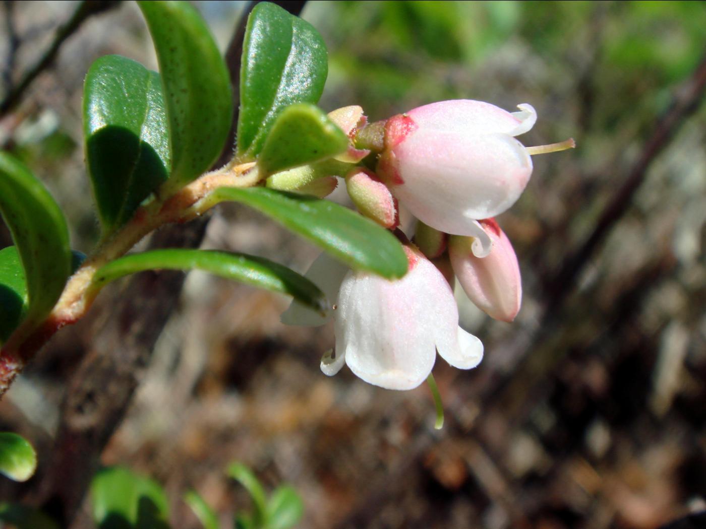 L’airelle rouge est une plante ligneuse indigène au Canada, qui forme des tapis. Les feuilles sont alternes, à marge entière et arrondie au sommet. Elles sont vert foncé, luisantes sur la face supérieure, coriaces et persistantes. Les fleurs sont en forme de clochette sans rétrécissement au sommet. Le fruit est une baie globuleuse, rouge et comestible.