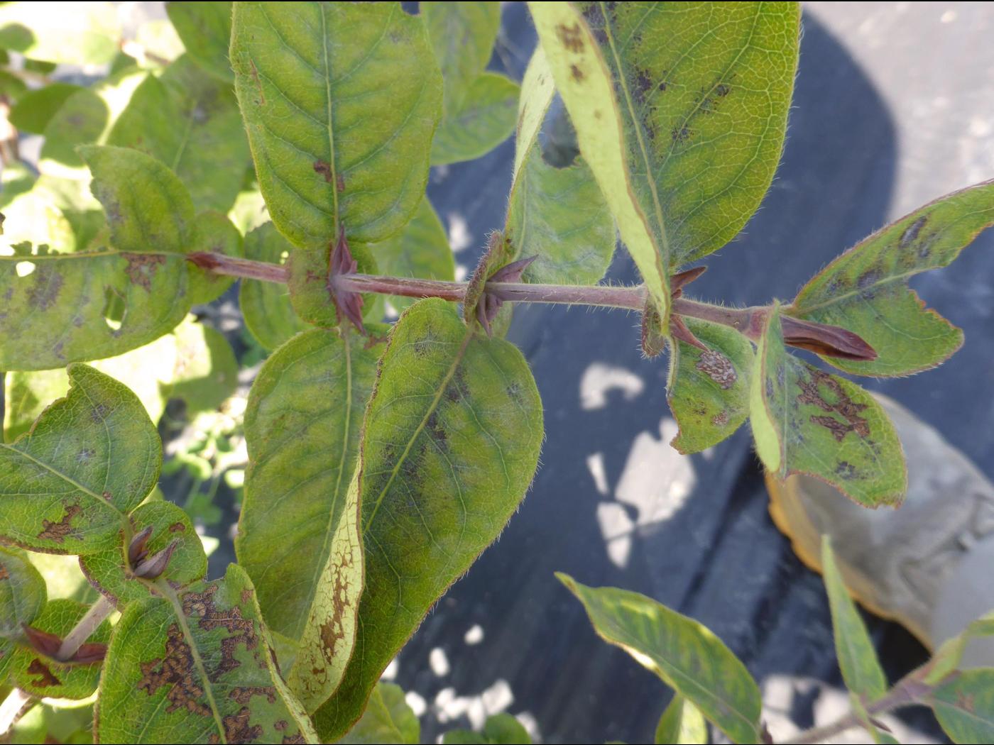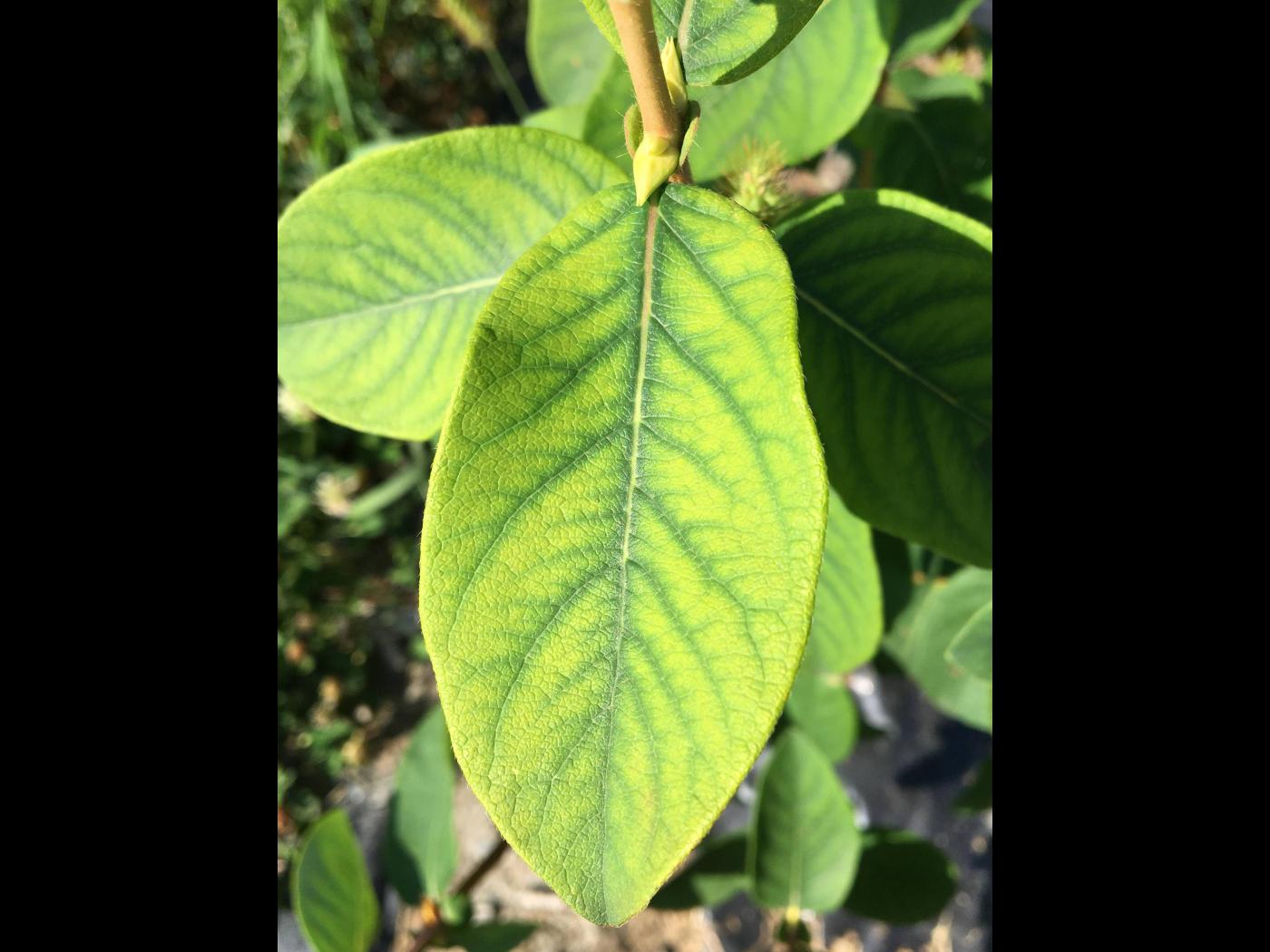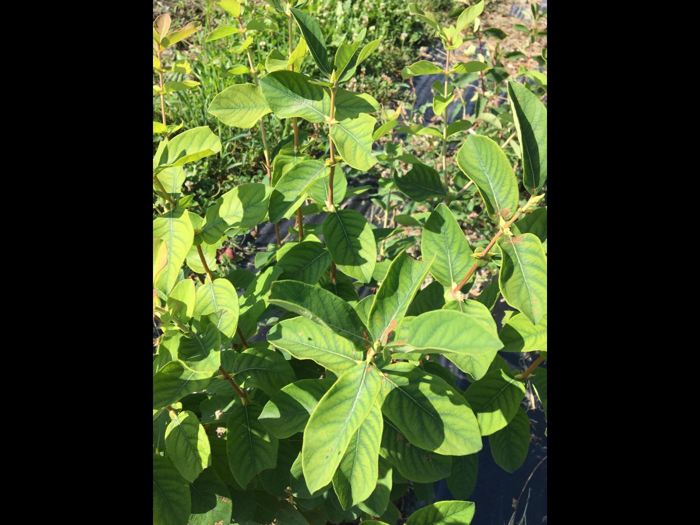 Le manganèse (Mn) joue un rôle essentiel dans la photosynthèse par l’activation d’enzymes, la respiration cellulaire et la formation de la chlorophylle. Une carence en manganèse affecte donc la photosynthèse, mais inhibe également l’élongation cellulaire dans les racines et la formation de racines secondaires. Puisque le manganèse est un élément immobile, les premiers symptômes de carence chez le camérisier apparaissent sur les jeunes feuilles, dans la partie supérieure de l’arbuste. Le manganèse fait partie du groupe des oligo-éléments. Bien que la quantité d’oligo-éléments assimilée par les plantes soit infime comparativement aux éléments fertilisants majeurs, leur présence demeure essentielle. Certains cultivars de camerise sont plus vulnérables aux carences en manganèse. Le ‘Honey bee’ en est un exemple.