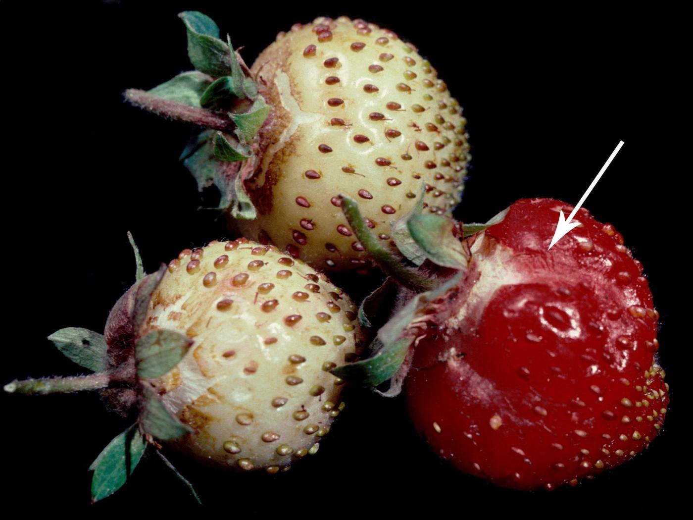 Fruit : sur les fruits qui touchent le sol ou le paillis, présence de taches déprimées, irrégulières et de différentes couleurs (beige, blanche ou brune). Pourriture éventuelle. Lors d’excès d’eau dans le sol, fendillement ou éclatement de l’épiderme près du calice ou le long du fruit.