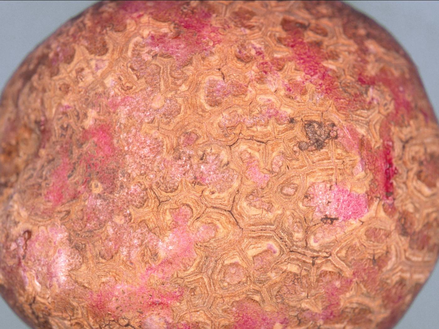 Tubercule : le périderme montre une surface rugueuse, plus foncée et plus épaisse que la normale. Il est gercé ou craquelé en profondeur et ressemble à une peau d’éléphant ou d’alligator.