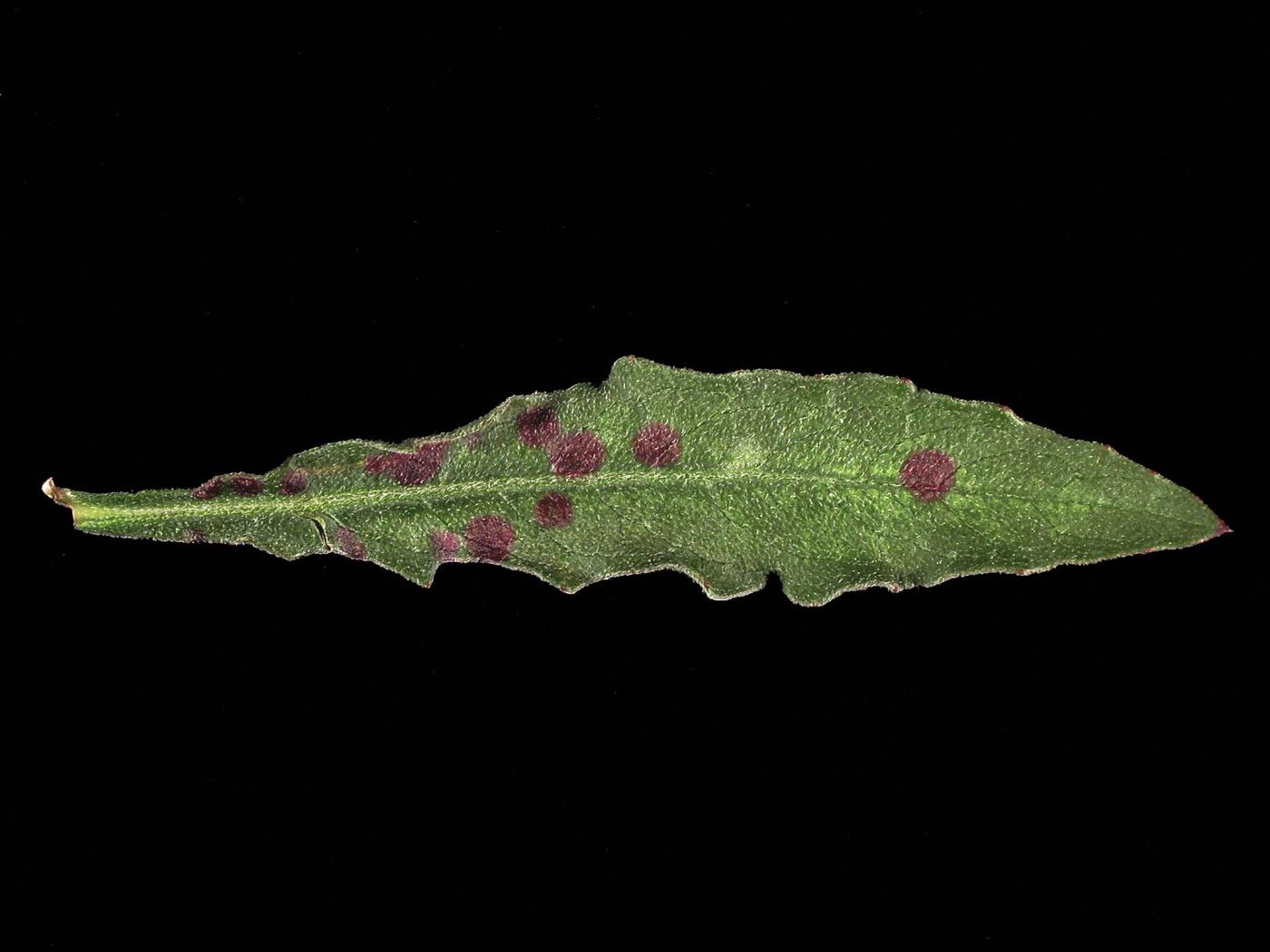 Feuille : présence de taches circulaires rouges sans halo jaune. Le diamètre des taches varie entre 1 et 3 mm.