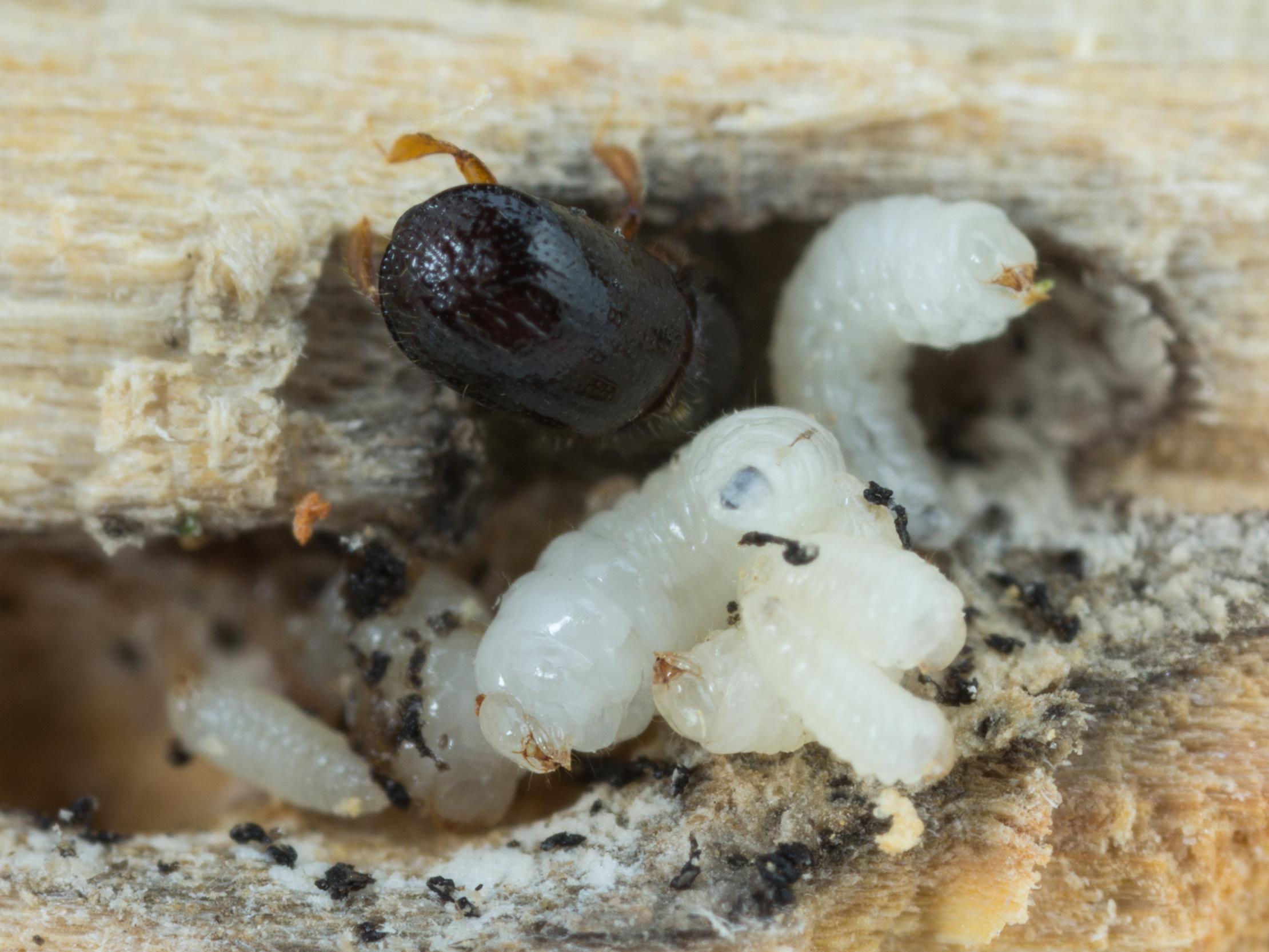 : Larves avec un adulte dans une galerie