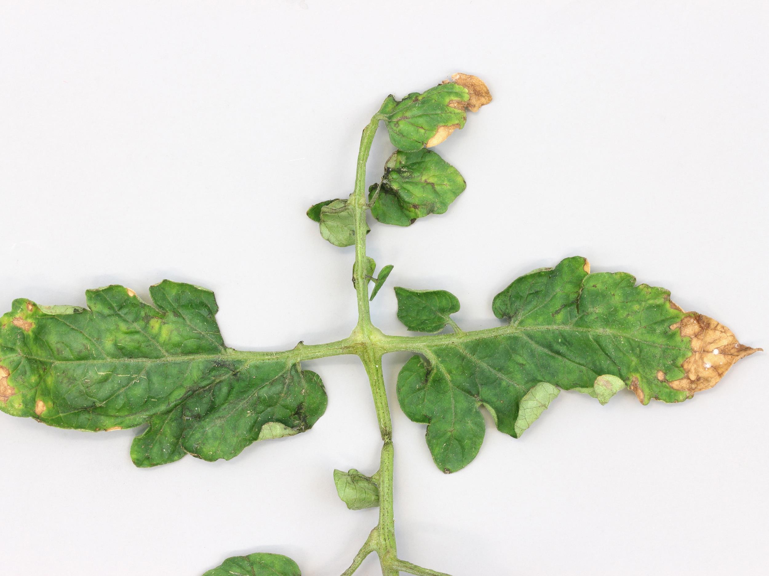 Légende: Brûlure sur folioles de tomate