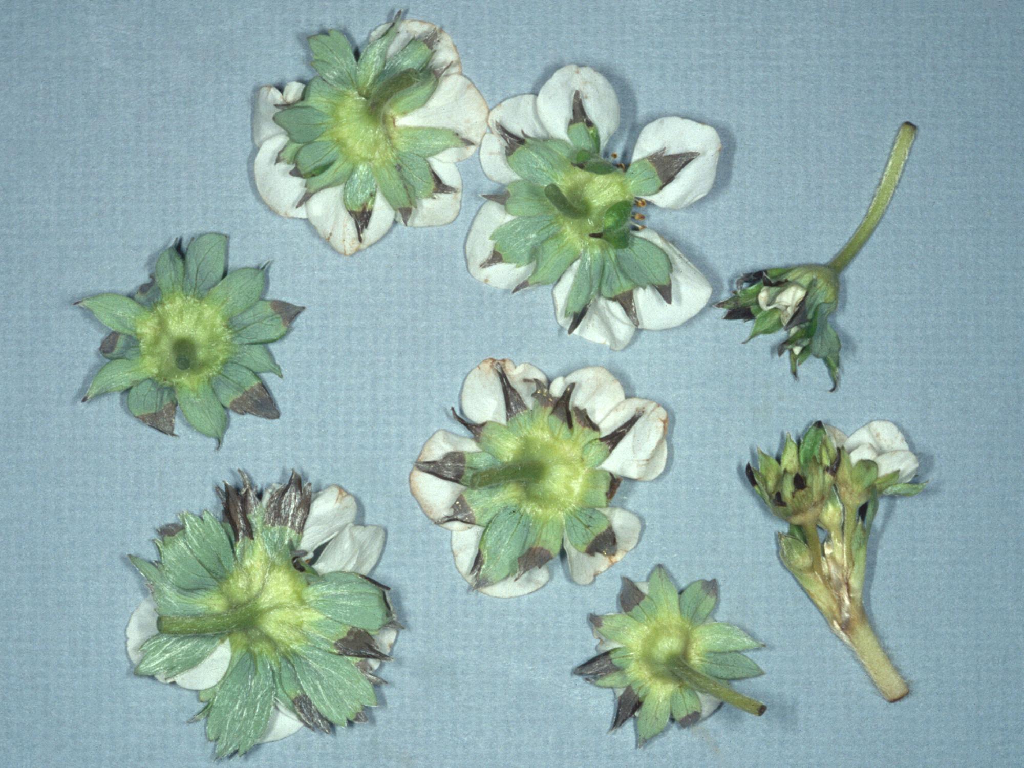 Légende: Brunissement des sépales des fleurs de fraisier