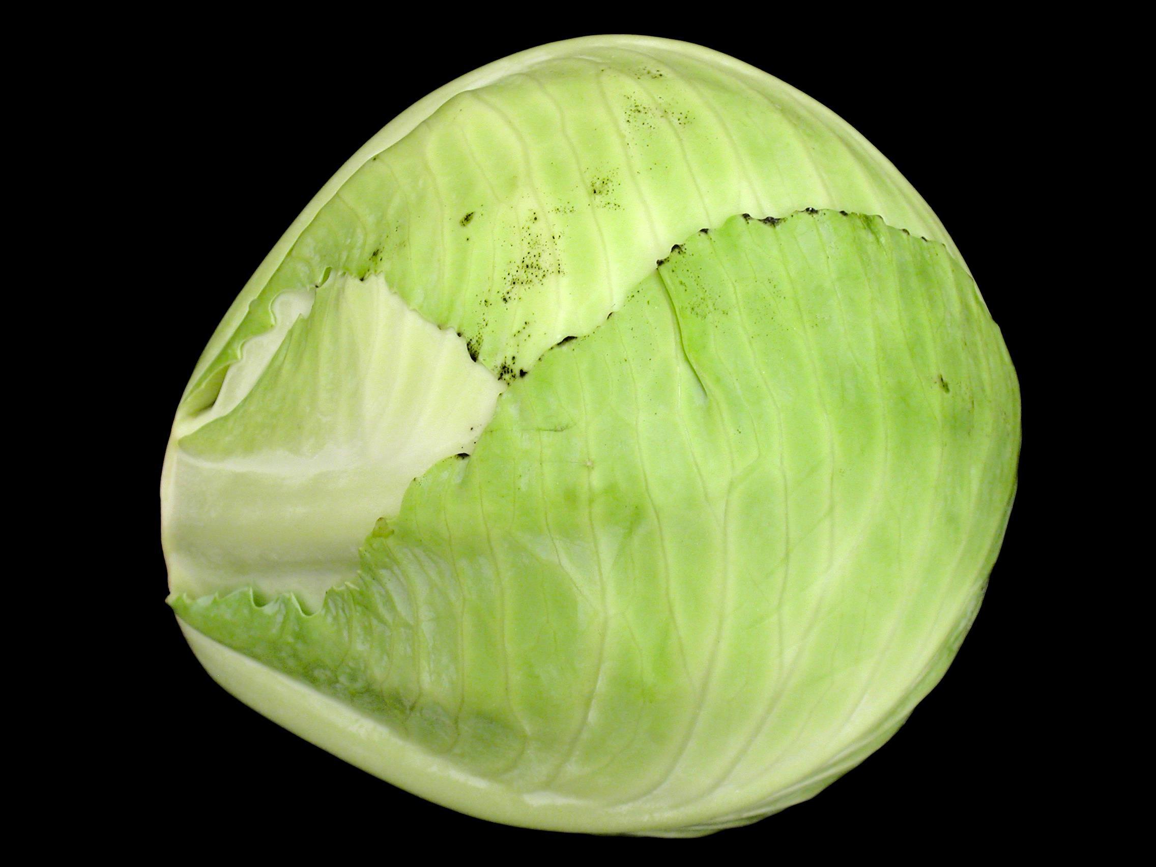 Description: Les feuilles externes d’un chou pommé montrent de petites taches noires uniformément disposées à la marge des feuilles et correspondant à l'emplacement des hydatodes. Ce dommage est caractéristique de la guttation.