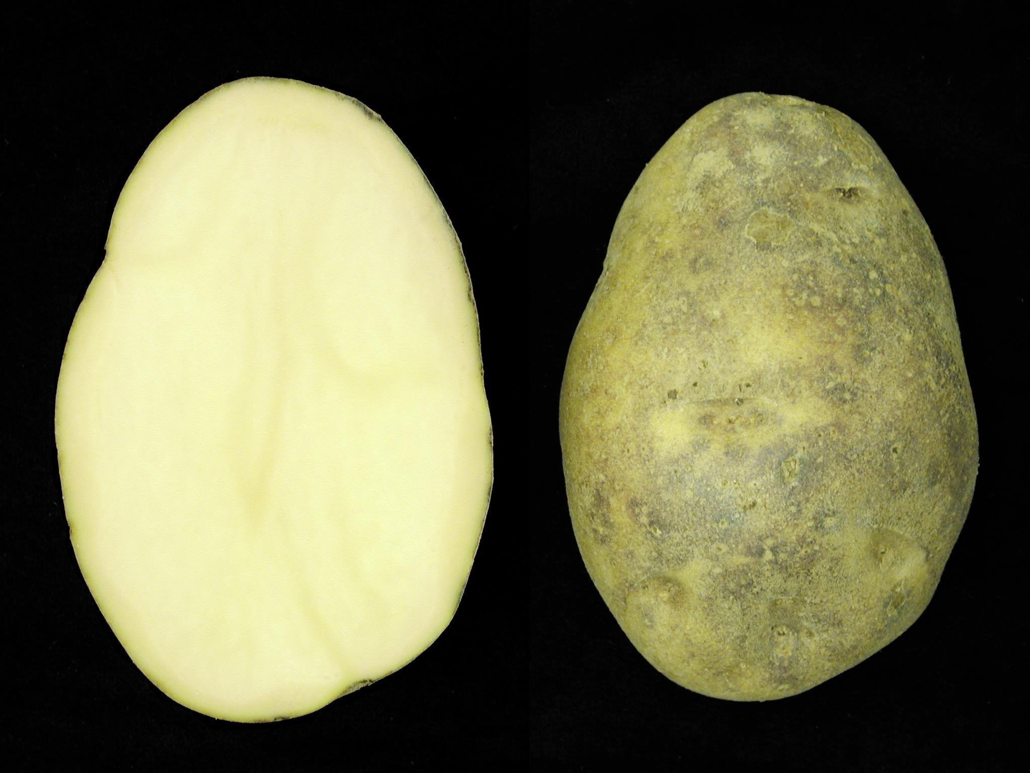 Légende: Comparaison entre la chair et l'épiderme d'un tubercule affecté