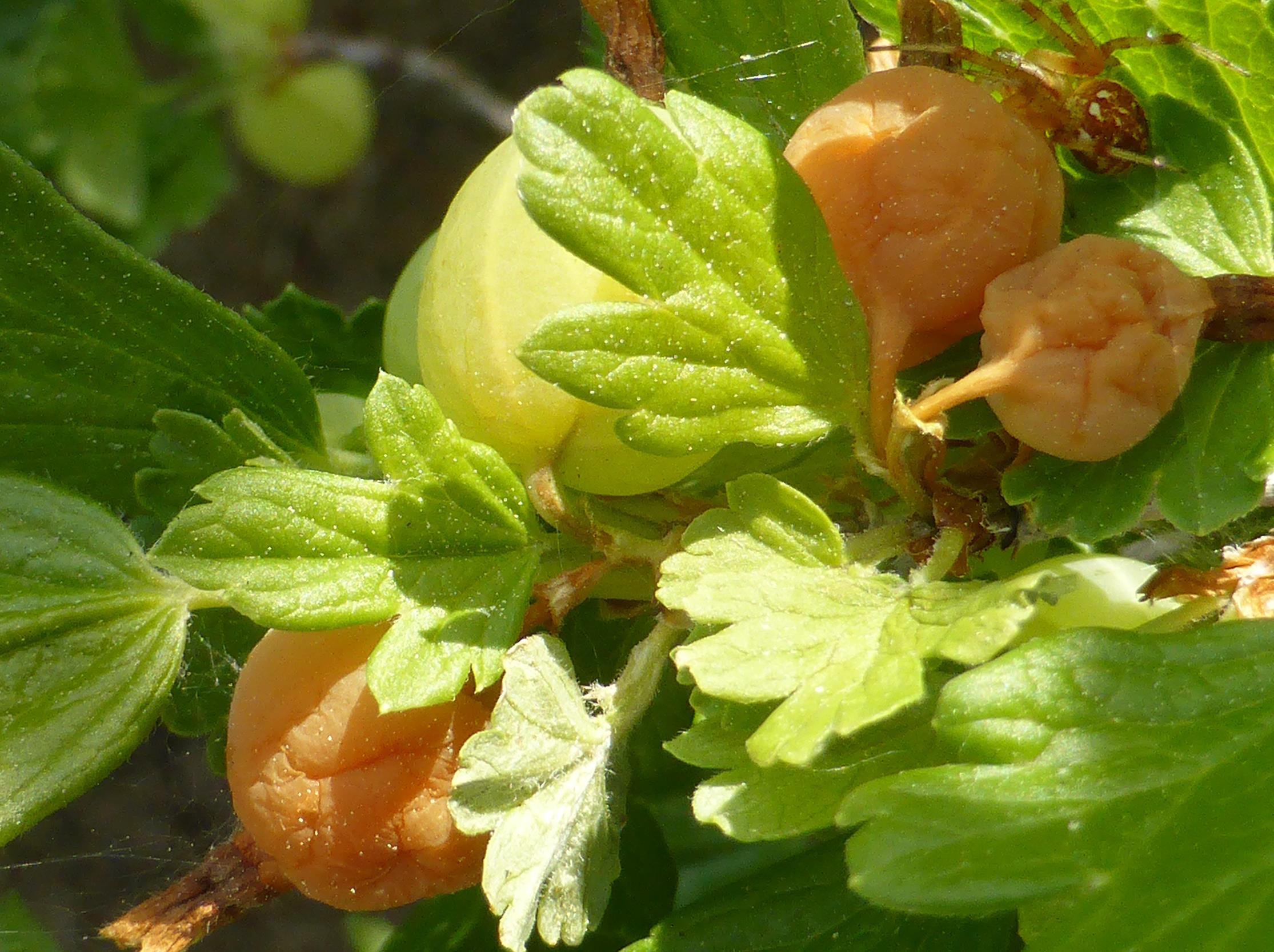 Description: Les baies de cassis montrent des tissus mous et une pourriture de la chair. Les tests de laboratoire se sont avérés négatifs pour la détection de bactéries et de champignons. Sur la base des symptômes et des conditions climatiques chaudes enregistrées au cours de la saison de production, le ramollissement des fruits et la pourriture interne sont causés par une insolation (journée très ensoleillée) jumelée à une température élevée et à des conditions sèches.