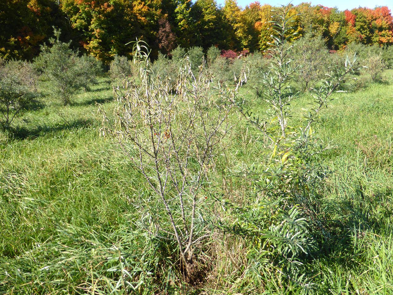 : Plant dépérissant en raison de la forte pression parasitaire du nématode Pratylenchus penetrans qui affectent son système racinaire.