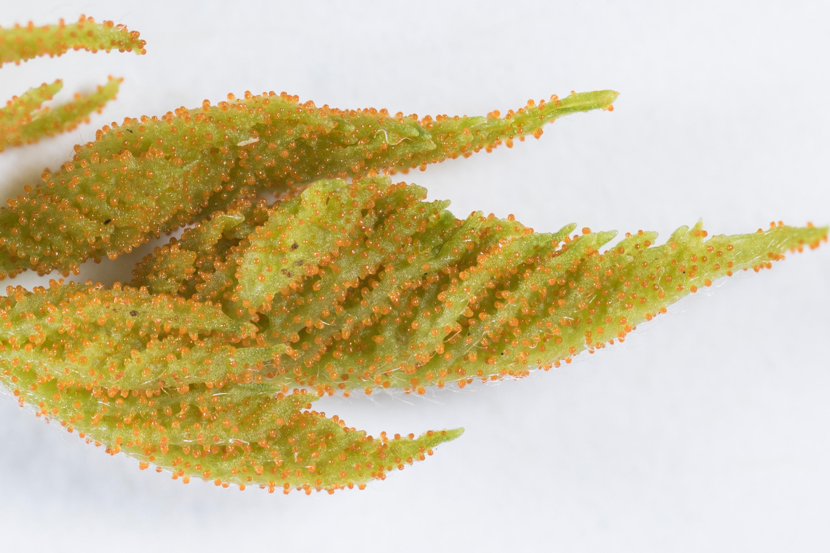 : Écidies d'Arthuriomyces sp. sur feuille de framboisier noir (Rubus occidentalis)