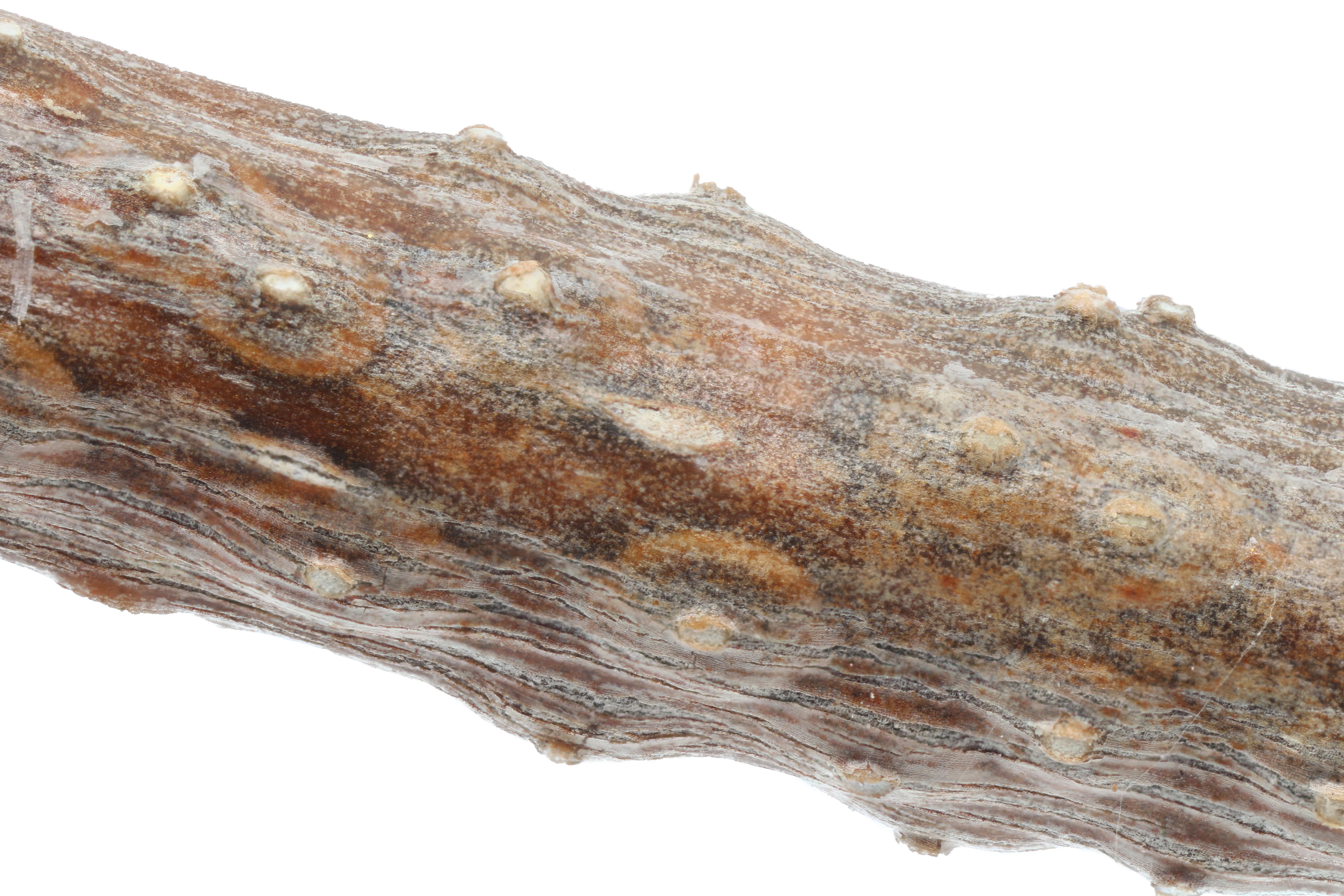 : Pycnides de Cytospora chrysosperma sous l'épiderme d'une branche de peuplier faux-tremble